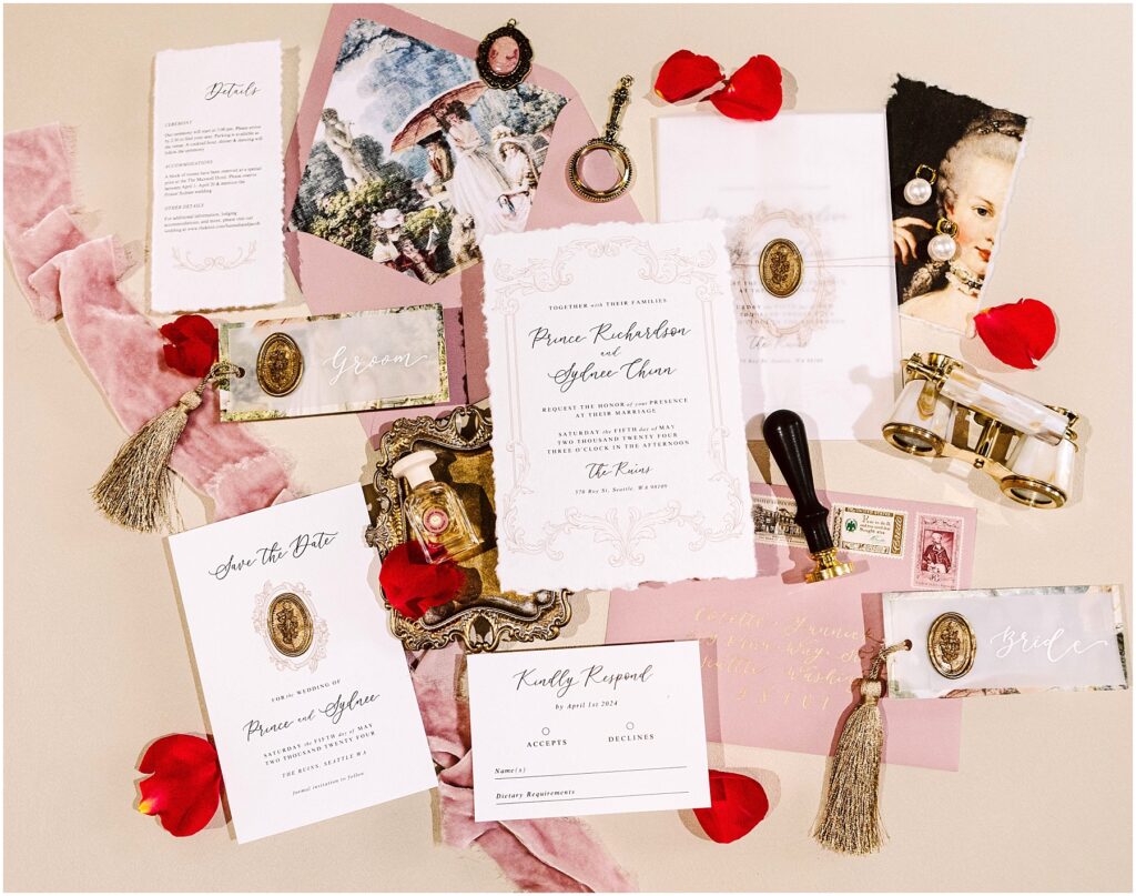 In April, we got to work with an INCREDIBLE team to create a little French-inspired beauty, just as a fun refresh for our creativity. The Ruins is an amazing venue with so much character – it’s filled with unique spaces, and surprises around every corner. It made a phenomenal backdrop for the wide range of magic that the designer & florist, Pollen in Love, wanted to bring to life.