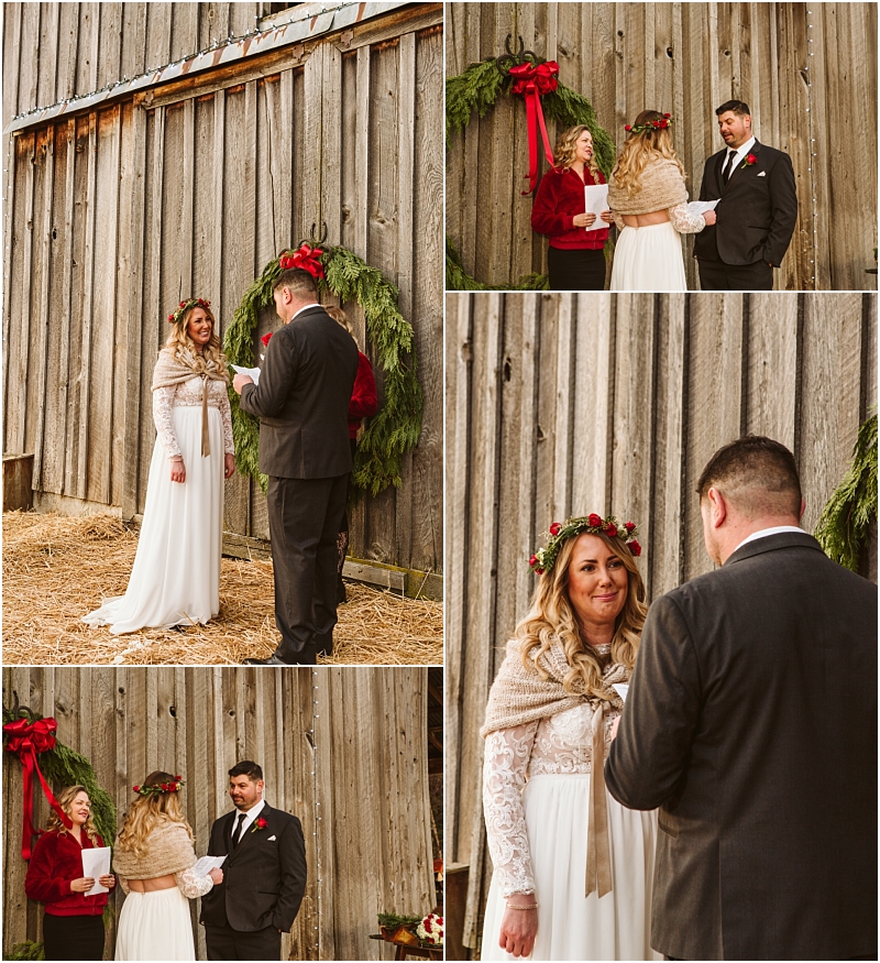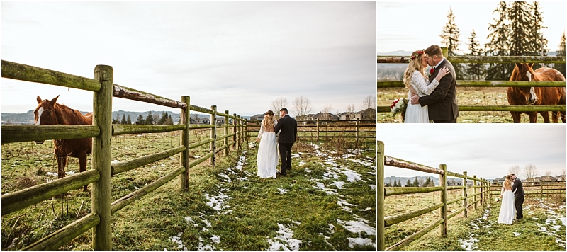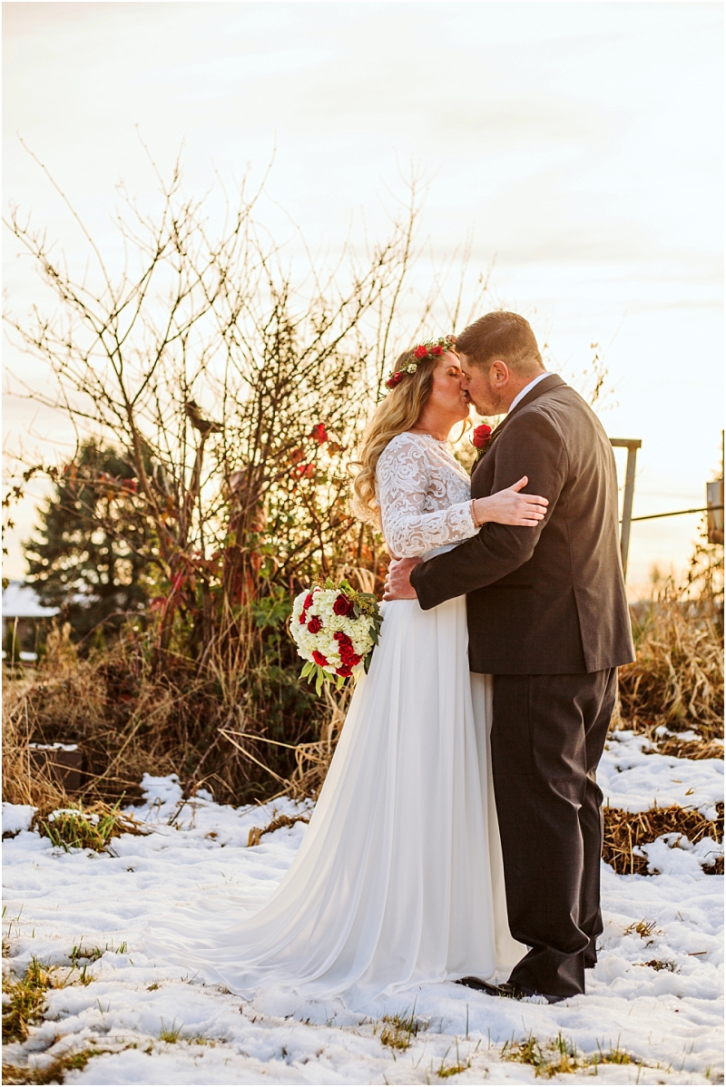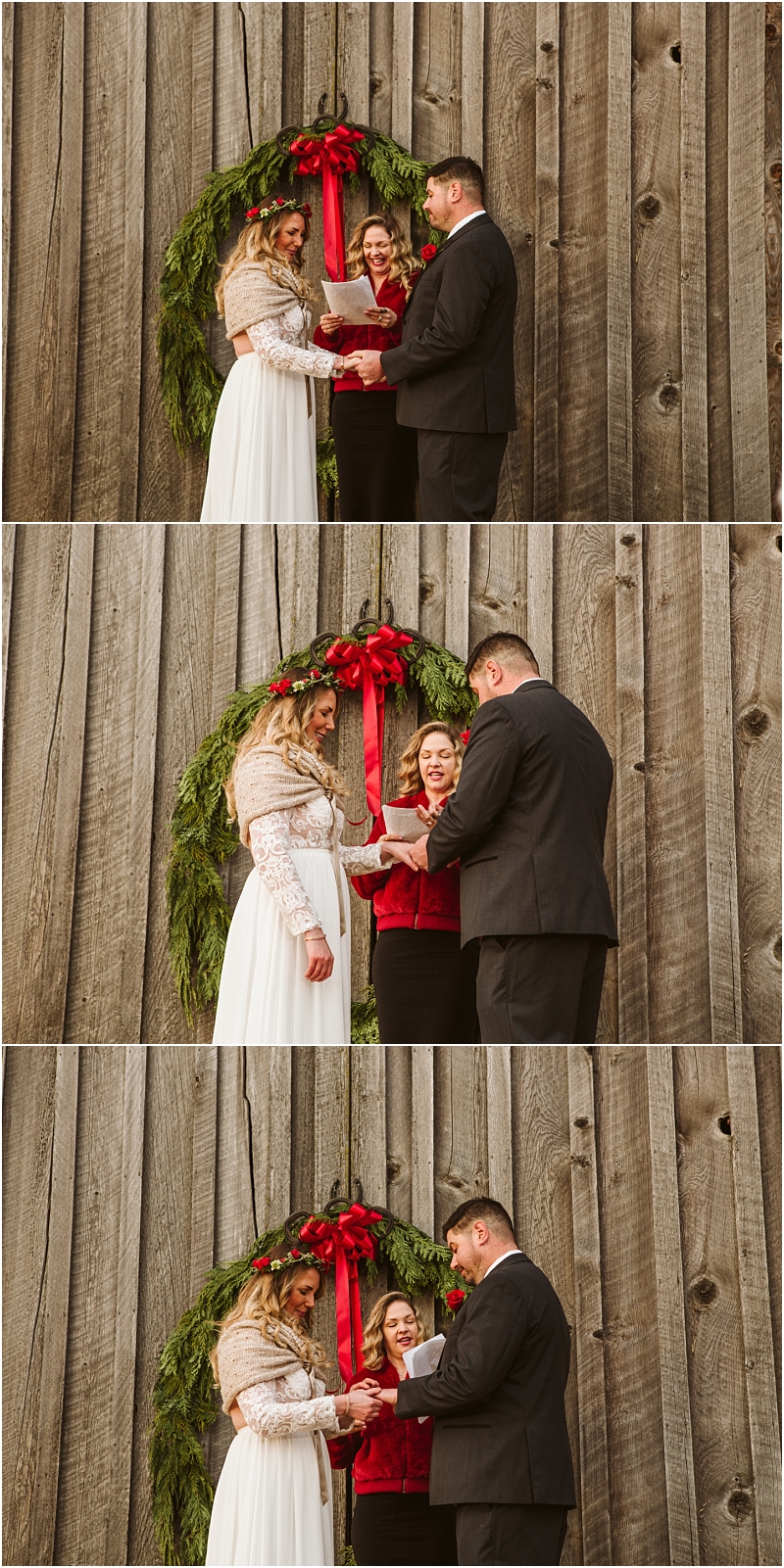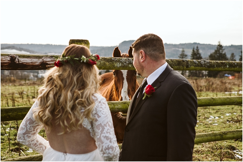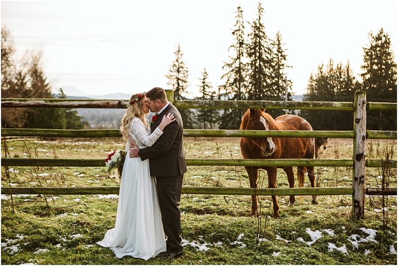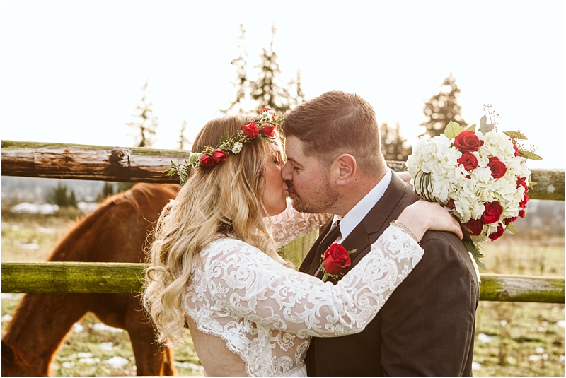 Complete with holly, snow, fuzzy blankets, wreaths, Christmas cookies and horses … not to mention incredible weather, this Christmas Wedding was absolutely perfect.
