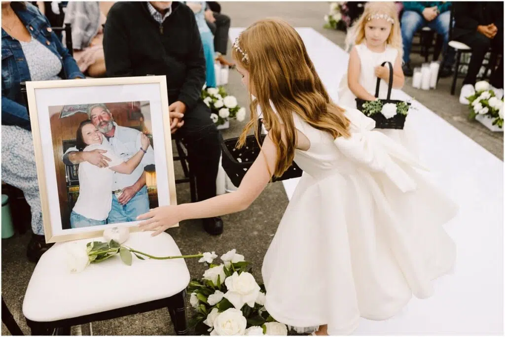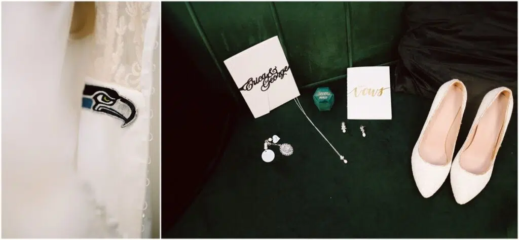 I have had a special Seahawks patched sewed into my dress because it belong to my dad who recently passed and was on his favorite jacket. It is my something old borrowed and blue. I will also have a charm attached to my bouquet that had his photo. I will have a seat saved for him with a picture, a small heart urn and a person item of his.