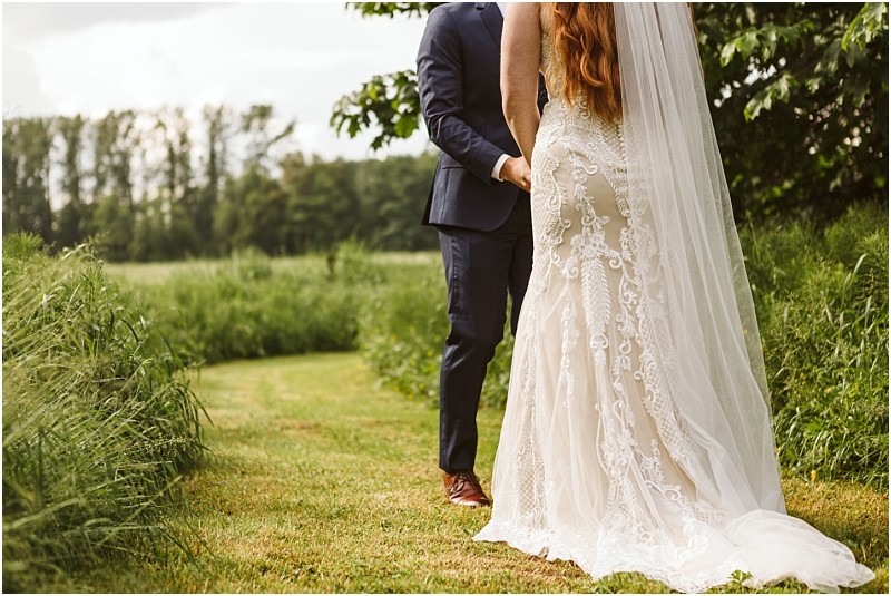 We really wanted an outdoor wedding, and when we saw the large open field, I started to tear up because I could completely picture us getting married there and I knew this was the spot we were meant to get married. The barn was equally as beautiful, especially for our reception. John, the venue manager, holds a special place in our hearts because he is so warm and inviting, and really shows that he cares about making your day the best possible day it can be! We also really loved his little corgi–Pilate.”