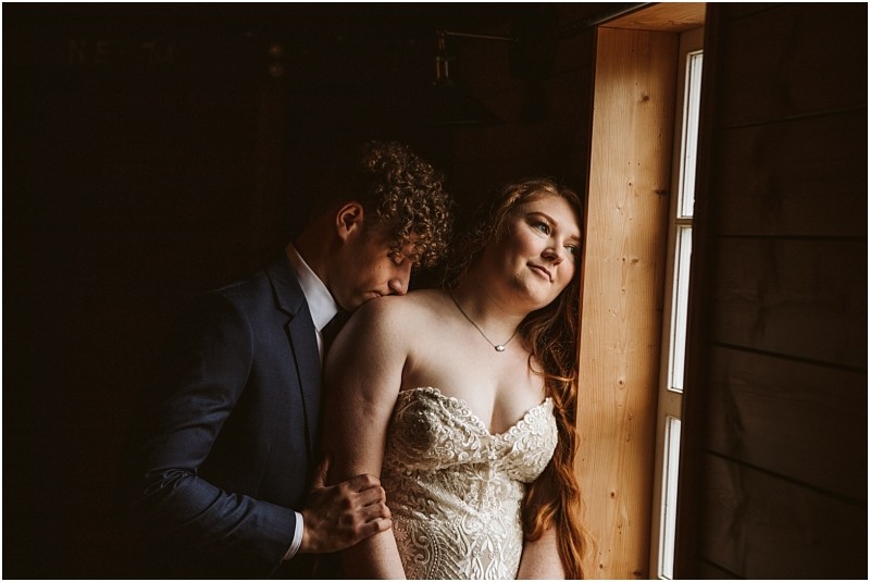 This incredible barn is a hidden gem not far off of Highway 9, and it’s a beautiful mix of classic red barn and modern interior touches. We love the hanging lights in the main barn, the dark wood of the upstairs loft, and we absolutely ADORE the brand new cafe that the owner John just finished – in fact, this elopement was the first one to actually have photos taken in the cafe!