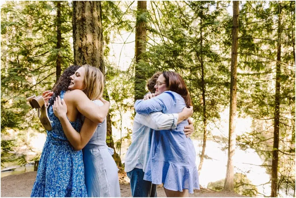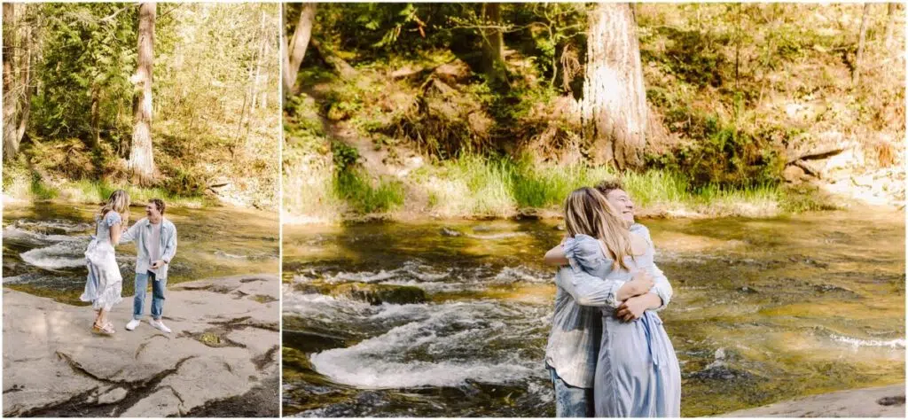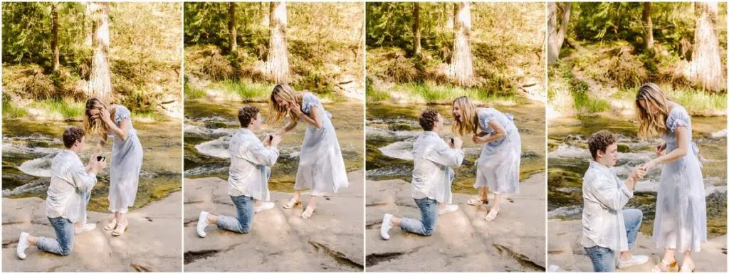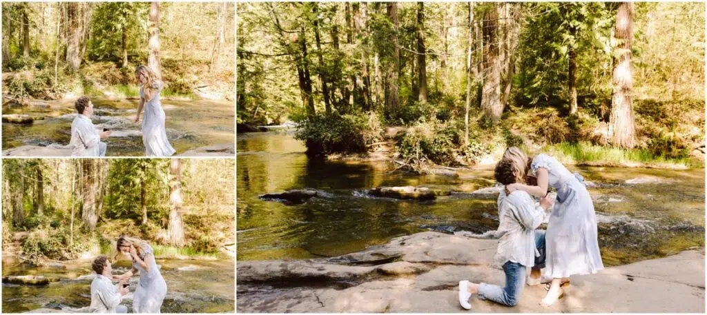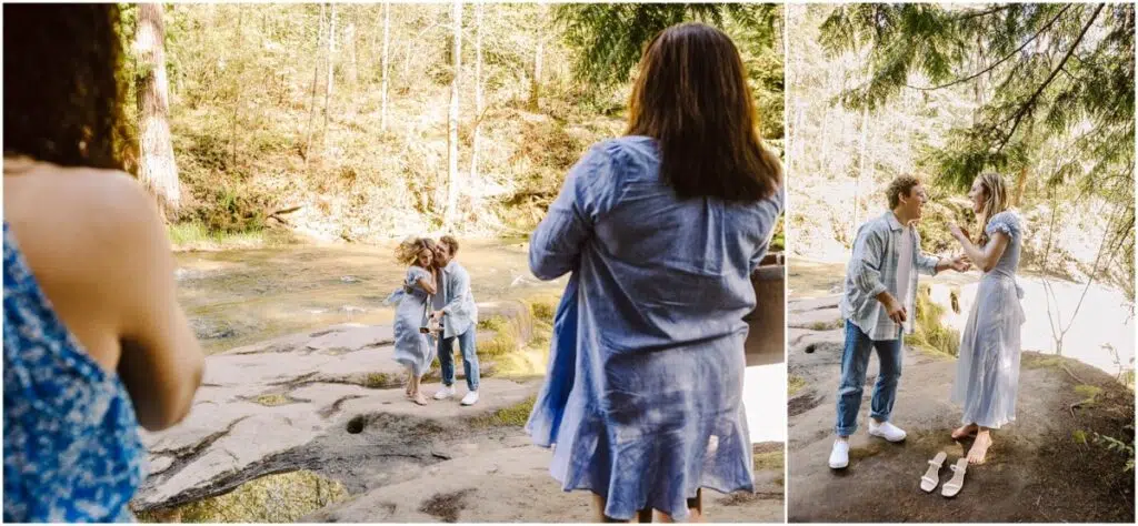 We met up at Whatcom Falls and took a few photos with their mamas, and then my nephew had something up his sleeve (or in his back pocket, as it were) … and dropped to his knee at the top of the falls.