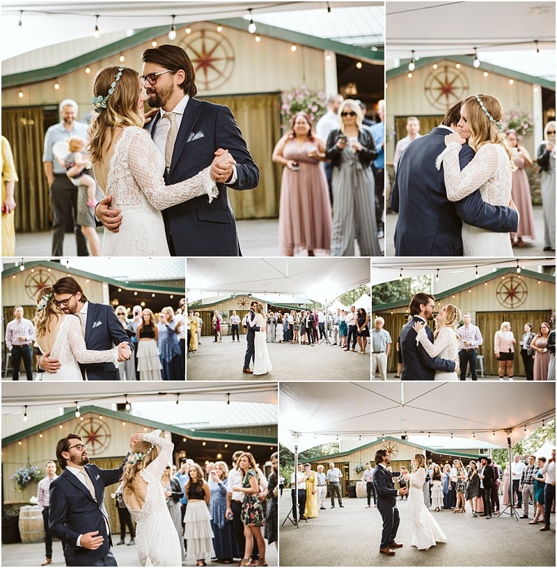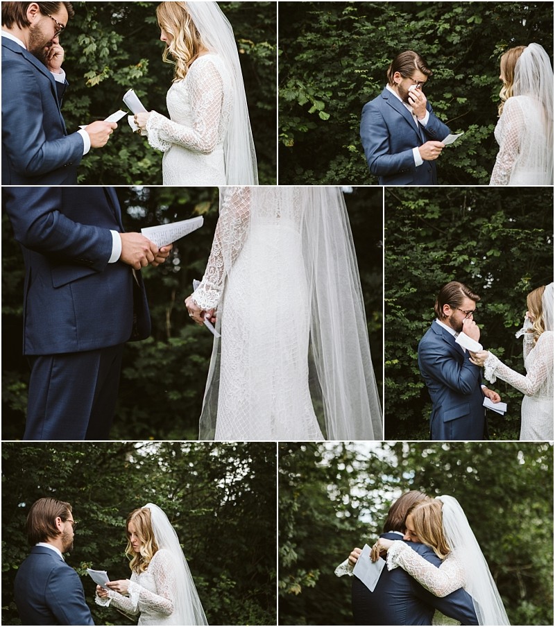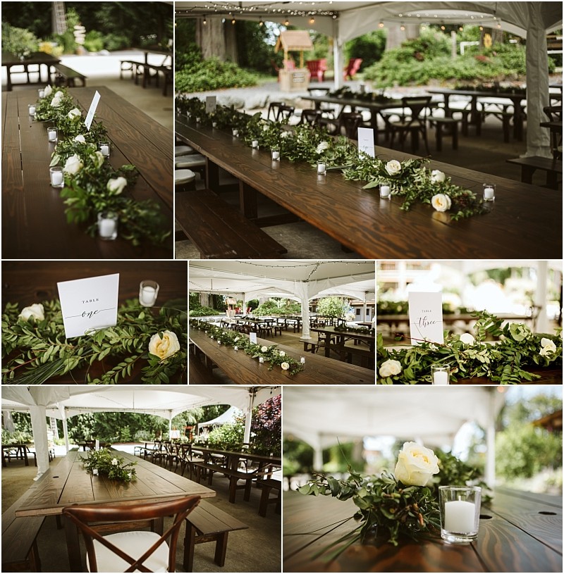 Meaghan and her friends relaxed and prepped at a nearby AirBNB on the morning of their wedding, and TJ busied himself making everything exactly right at The Lookout Lodge (he did great, didn’t he? Check out those tables!!) There were plenty of tears during their first look and private vow exchange, as TJ couldn’t take his eyes off Meaghan. TJ’s brothers performed a song during the ceremony, and then everyone danced the night away in the reception tents.