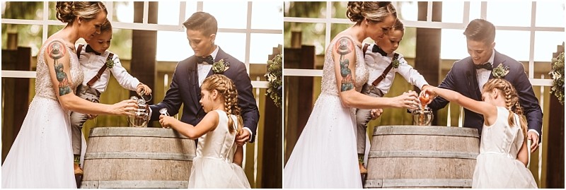 There will be a unity glass ceremony that involve their kids Ashton and Jacob. We will be pouring 4 different colored glass crystals together. The glass crystals will then be sent off to a glassblowing studio and blown into a one-of-a-kind vase and ring bowl.